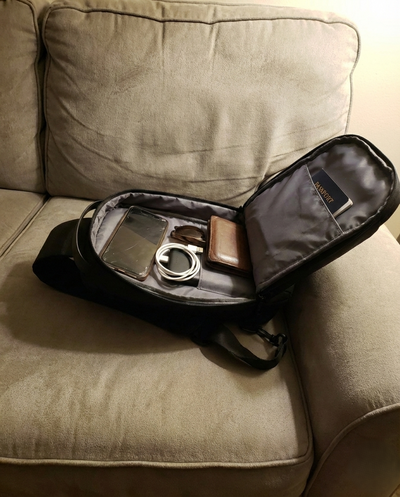 “Compact but super practical. Fits my passport, wallet, phone and charger easily. The water-resistant and slash-resistant design makes it ideal for commuting and travel.”