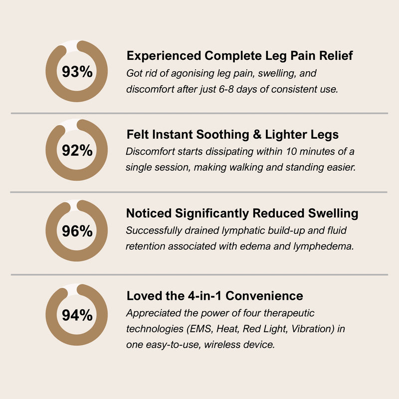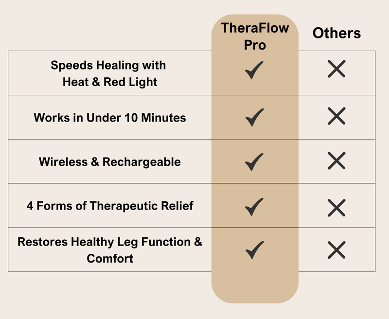 Use TheraFlow Pro daily for just 10 minutes per session. Consistency is key to clearing lymphatic build-up and seeing permanent improvement in leg pain and swelling.